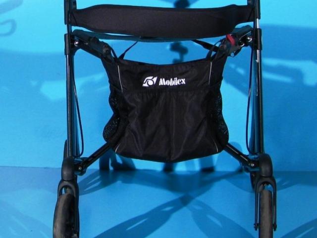 Rolatorul este prevazut cu geanta de cumparaturi care suporta o greutate de 5 kg.