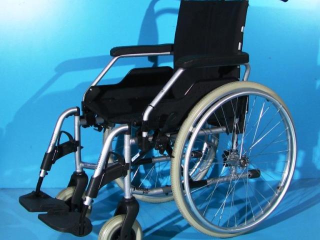 Scaunul rulant are schelet metalic si parti din aluminiu, vopsit epoxy.