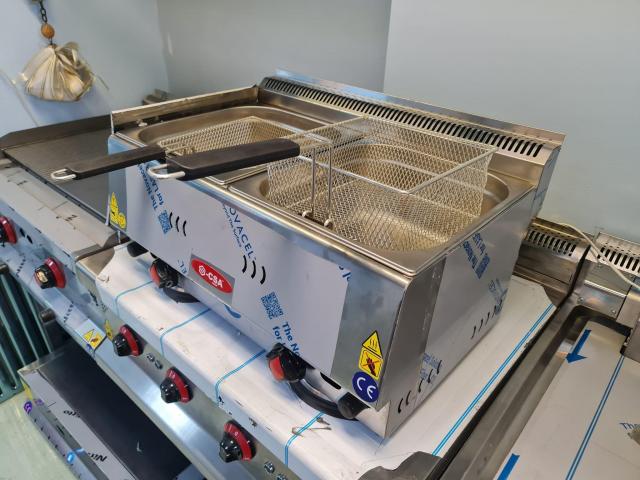 Friteusa gaz, dubla 8+8 Litri, Putere 2x4 KW,cu termostat pt protectie la supraincalzire greutate 15 kg, ALIMENTARE GAZ RETEA SAU GAZ BUTELIE ,DIMENS. 660x440x350 mm