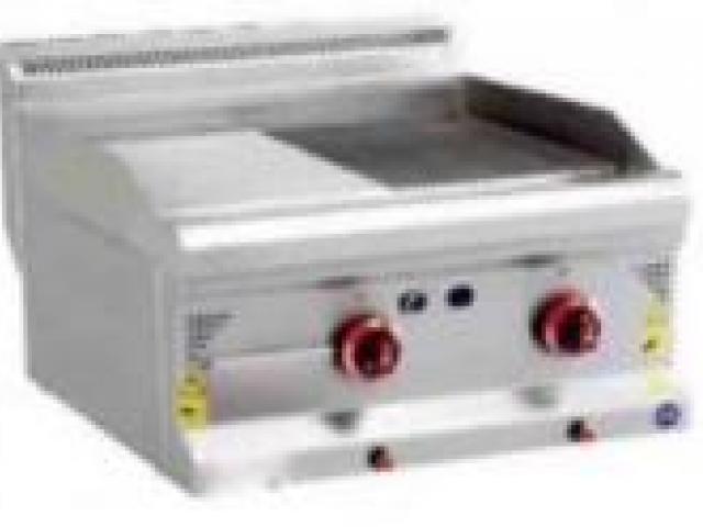 * Gratar corp inox, de banc, alimentare gaz; cu placa din otel 1/2 suprafata neteda si 1/2 suprafata striata; prevazut cu sertar de colectare a grasimii, putere 14.5 kW, cu 2 zone separate de lucru; aprindere piezoelectrica; prevazut cu termocupla pt protectie la gaz; dimens.800x700x300 mm Pret 5100 lei + tva